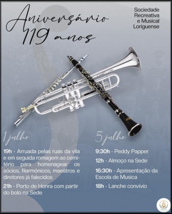 da Sociedade Recreativa e Musical Loriguense, fundada em 1 de Julho